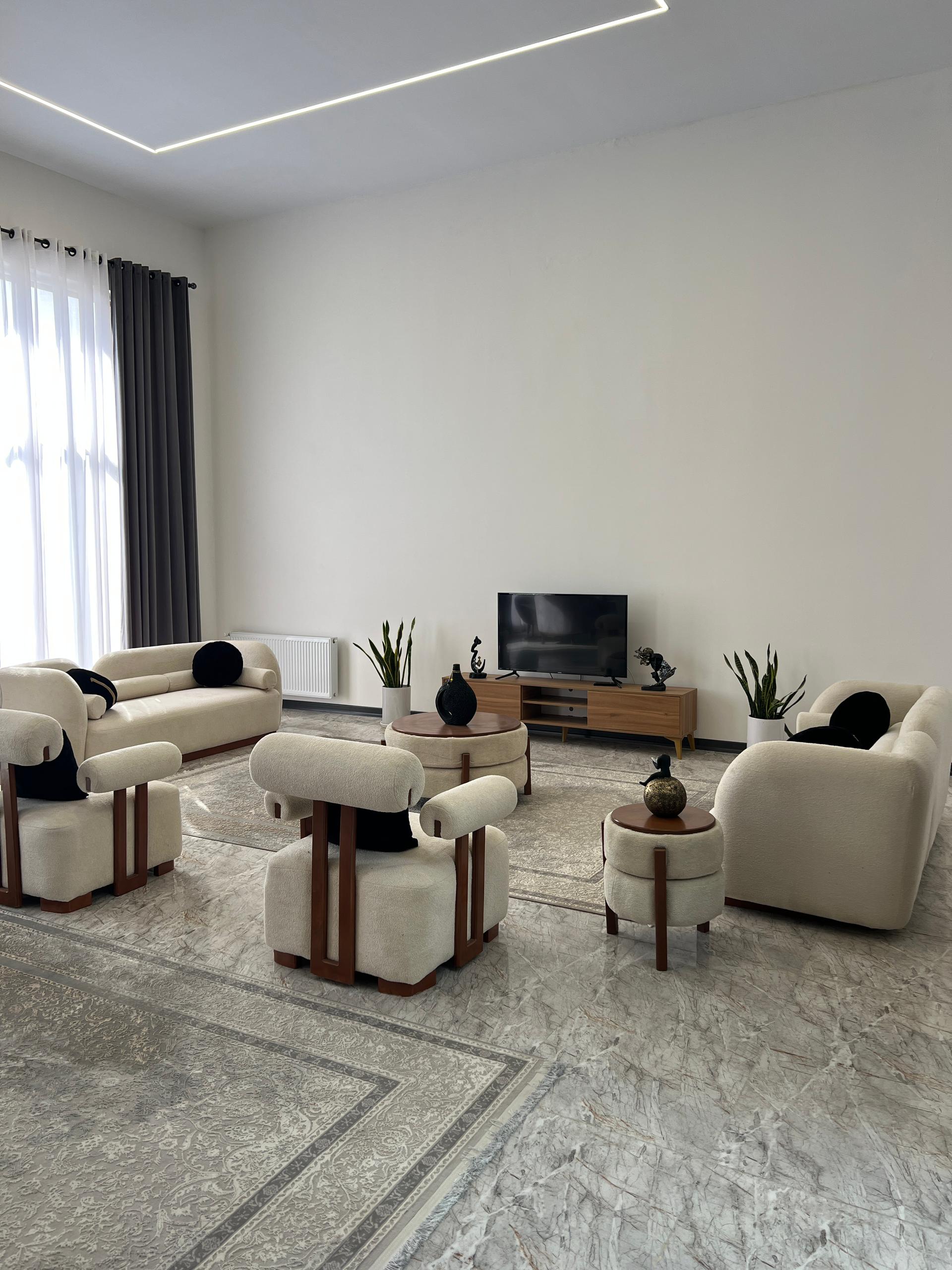 طراحی داخلی این ویلا، با استفاده از متریال درجهیک و ترکیب رنگهای روشن و گرم، حس لوکس بودن و آرامش را همزمان منتقل میکند.